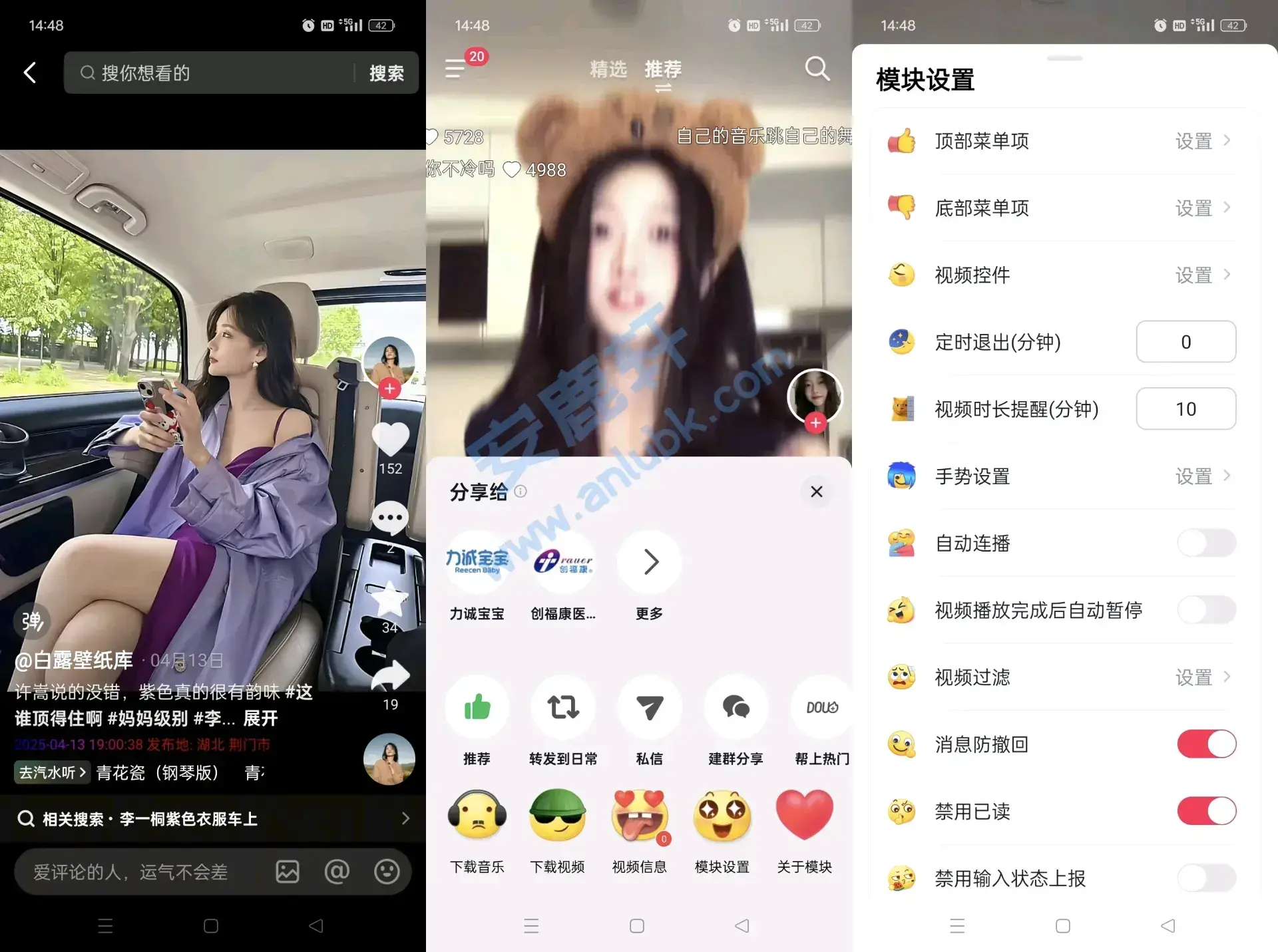 安卓|抖音36.8.0内置插件+消息撤回模块 无广告精简看各种美女