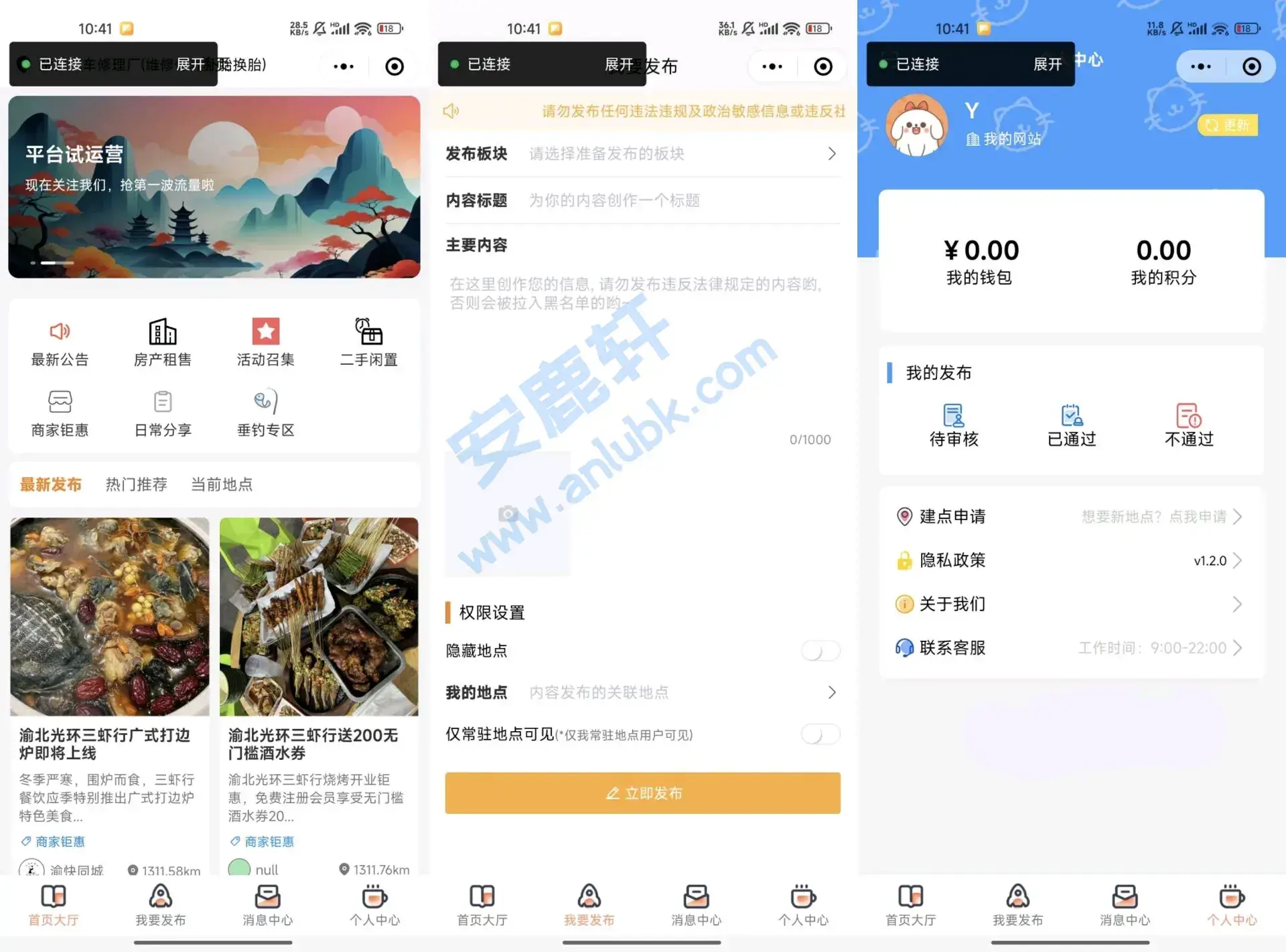 源码|开源渝快同城1.0.5修复版 同城社区小程序源码 同城二手交易房屋租售招聘信息发布平台